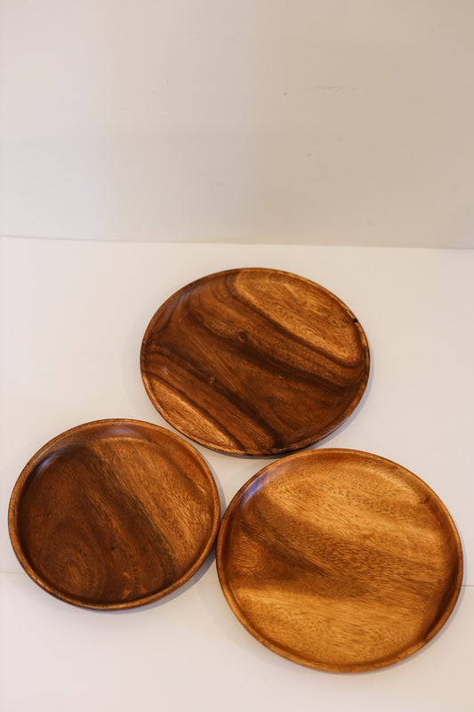Wooden Acacia Plates - Set of 3 (Small, Medium and Large) | The Pino Collection